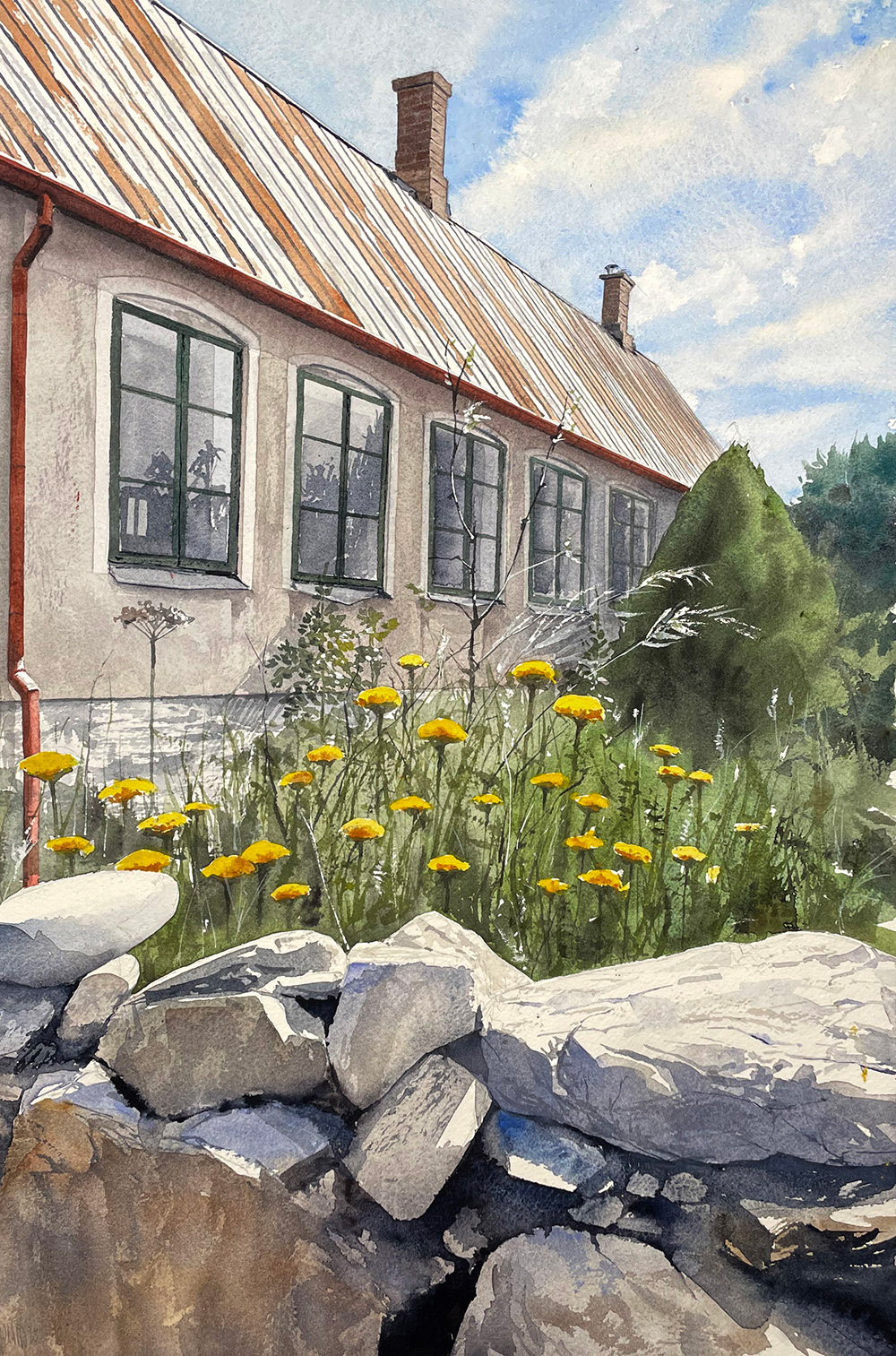 Ramad med grå trälist och passepartout. Skriv till galleriet@konstochfolk.se vid funderingar om inramningen.